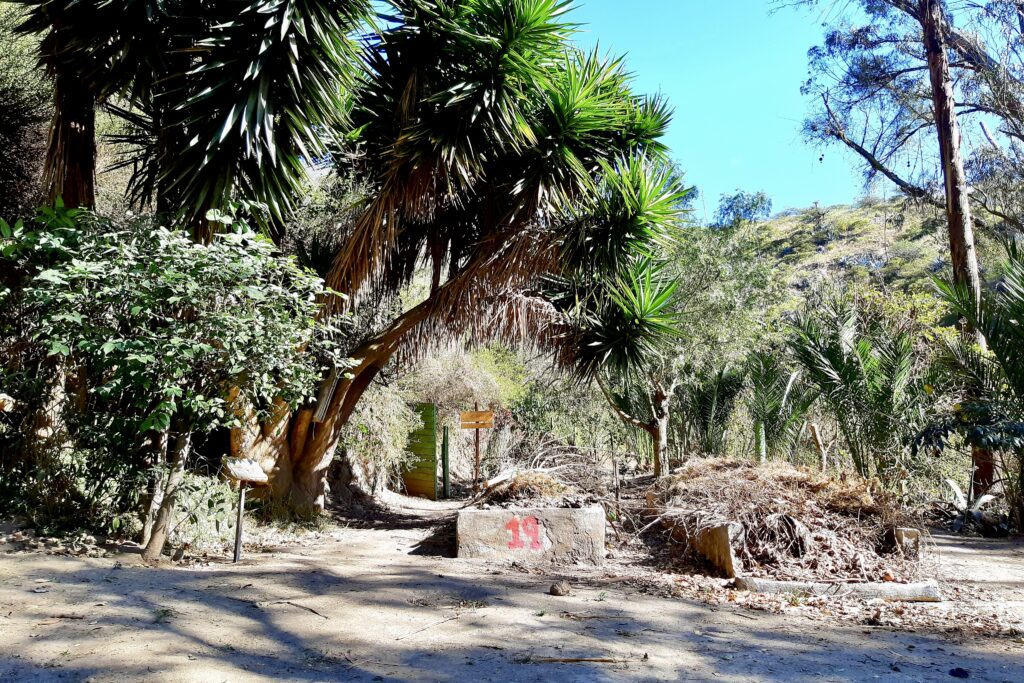 Es gibt mehrere schön angelegte Wege, die den Abhang hinunter zur Recyclingstation und den Kompostbetten führen, und dabei immer wieder Lehrschilder zu den Pflanzen und Tieren, die hier leben. Schlangen und Skorpione habe ich hier leider noch keine gesehen, aber dafür viele Kolibris und wunderschöne kleine rote, gelbblaue und gelbgrüne Vögel.