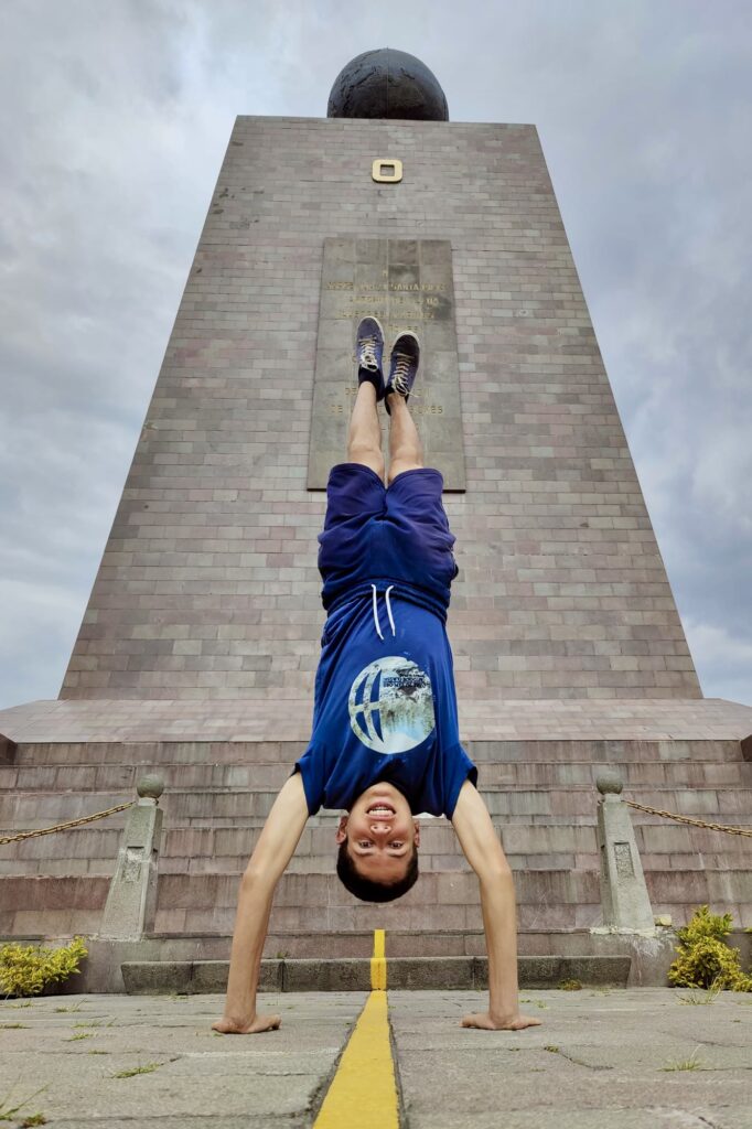 Mit dem Bus erreicht man von Pomasqui aus in etwa fünf Minuten den Nachbarort, San Antonio de Pichincha, wo ein 30 Meter hohes Monument steht. Hier ist eine gelbe Linie eingezeichnet, die den Äquator markiert. Auf der kann man sich breitbeinig (oder breitarmig) hinstellen und man steht angeblich auf beiden Erdhalbkugeln gleichzeitig.
