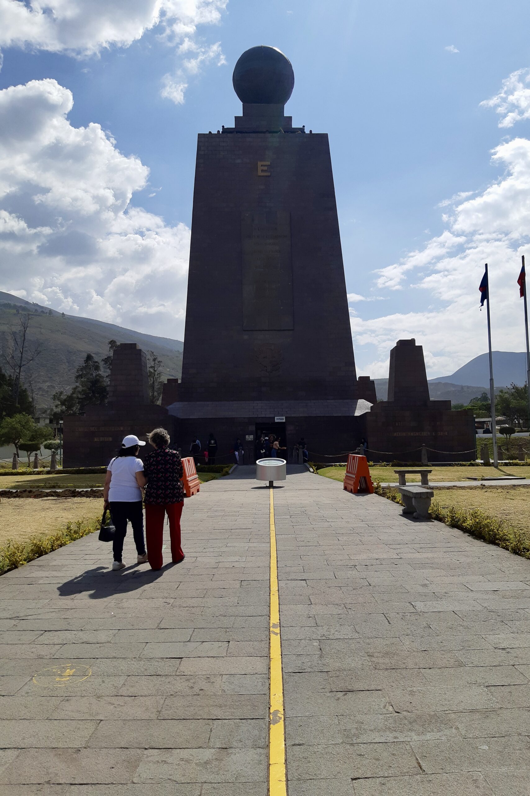 Mit dem Bus erreicht man von Pomasqui aus in etwa fünf Minuten den Nachbarort, San Antonio de Pichincha, wo ein 30 Meter hohes Monument steht. Hier ist eine gelbe Linie eingezeichnet, die den Äquator markiert. Auf der kann man sich breitbeinig (oder breitarmig) hinstellen und man steht angeblich auf beiden Erdhalbkugeln gleichzeitig.