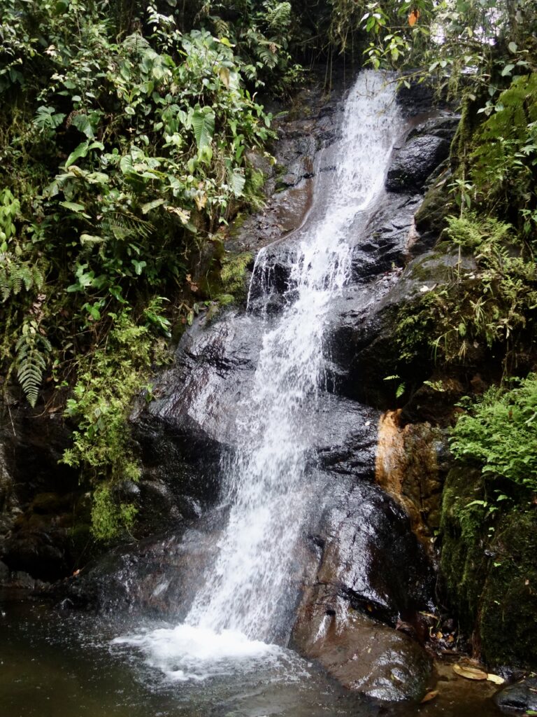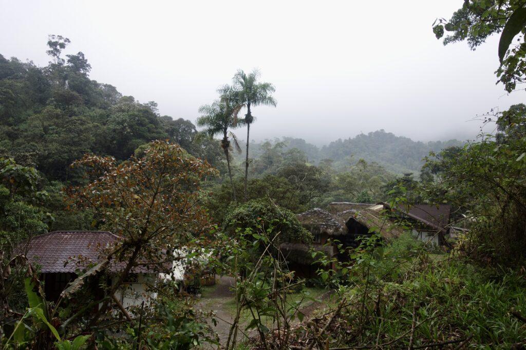 Meine Reise in eines der artenreichsten Gebiete der Welt beginnt morgens um 7 Uhr. Da die Busse aus Quito in Richtung Mindo immer durch Pomasqui fahren, warte ich ganz entspannt an der Hauptstraße auf einen Bus, und warte und warte… Doch es kommt keiner. Ich erfahre bald, dass ein Fahrradrennen in Quito stattfindet und daher viele Straßen gesperrt sind. Ausgerechnet heute!!! Also versuche ich auf Ratschlag anderer mein Glück an einer anderen Straße, doch da ich mir nicht sicher bin, ob der Bus hier überhaupt hält, wenn ich winke, nehme ich einen Bus in Richtung Quito zum Terminal, wo die Busse starten. Glücklicherweise gibt es einen Bus der schon um 10 Uhr abfährt (es ist zu diesem Zeitpunkt bereits 9:50 Uhr). Durch dieses hin und herfahren und einen massiven Stau, der sich durch die Straßensperrungen gebildet hat, befinde ich mich jedoch erst um 11 Uhr wieder in Pomasqui. Danach geht es jedoch endlich voran und ich steige bald in dem kleinen Dorf Nanegalito aus, von wo aus mich jemand mit seinem Wagen über eine kleine Straße nach Maquipucuna mitnimmt. Nicht pünktlich um 13 Uhr komme ich endlich an, 4 Stunden später als geplant.