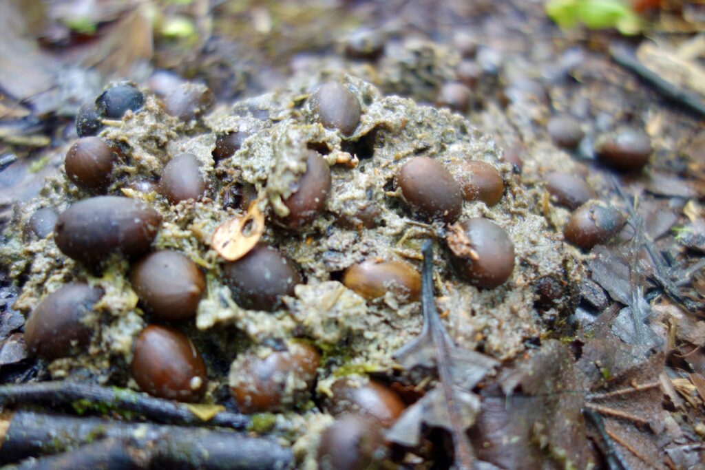 Aber jetzt möchte ich davon berichten, wofür ich eigentlich nach Maquipucuna gekommen bin: die Brillenbären. Zweimal machen mir uns vormittags nach dem Frühstück, wenn die Bären noch aktiv sind, auf dem Weg, um sie zu finden. Erfahrende Bärenfinder laufen uns vorweg. Die Brillenbären sind nur etwa 6 Wochen pro Jahr in dieser Gegend, wenn eine bestimmte Avocadoart reif ist, die die Brillenbären gerne essen. Da die Saison fast zu Ende ist, müssen wir einige Kilometer durch den Wald laufen, um einen Bären zu sehen.