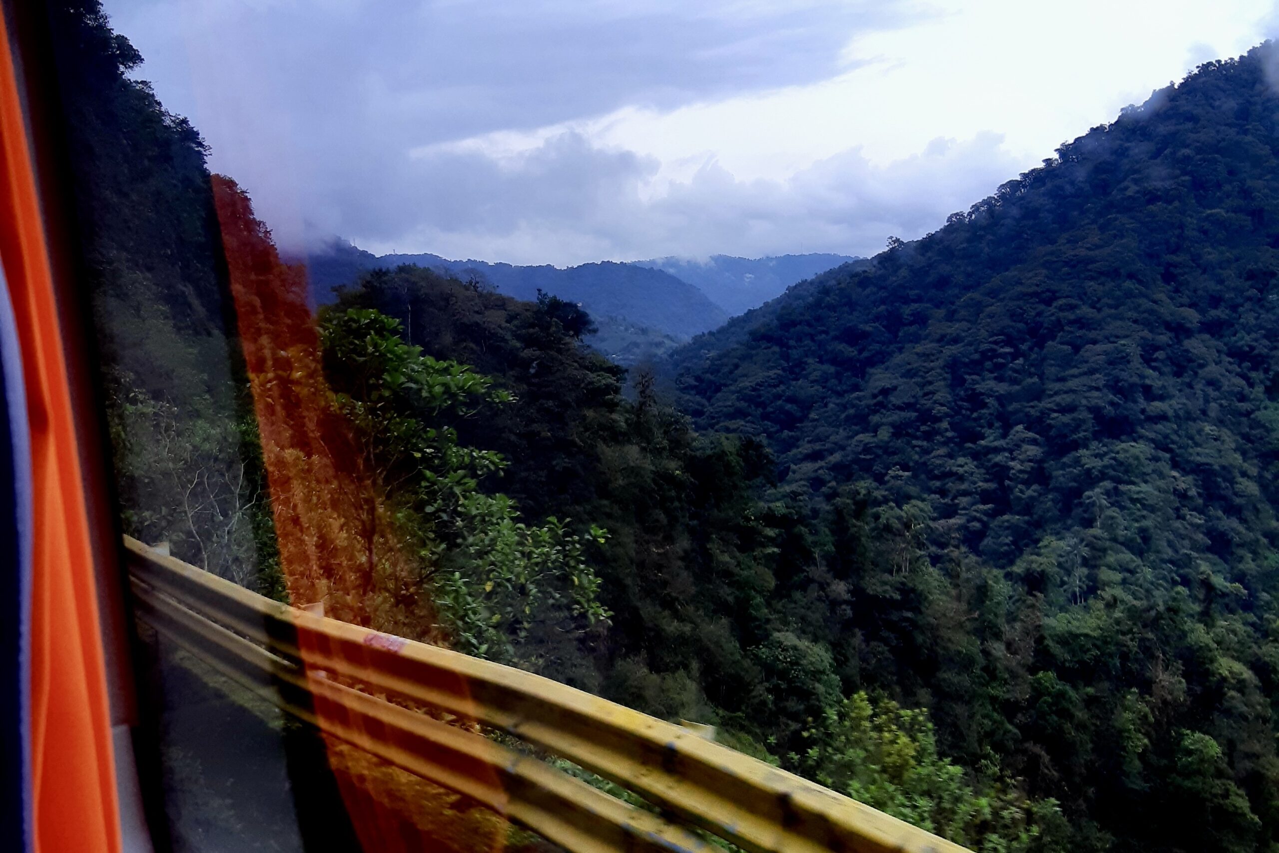 Rechts im Foto sieht man meine Sicht auf dem Nebelwald vom Bus aus.