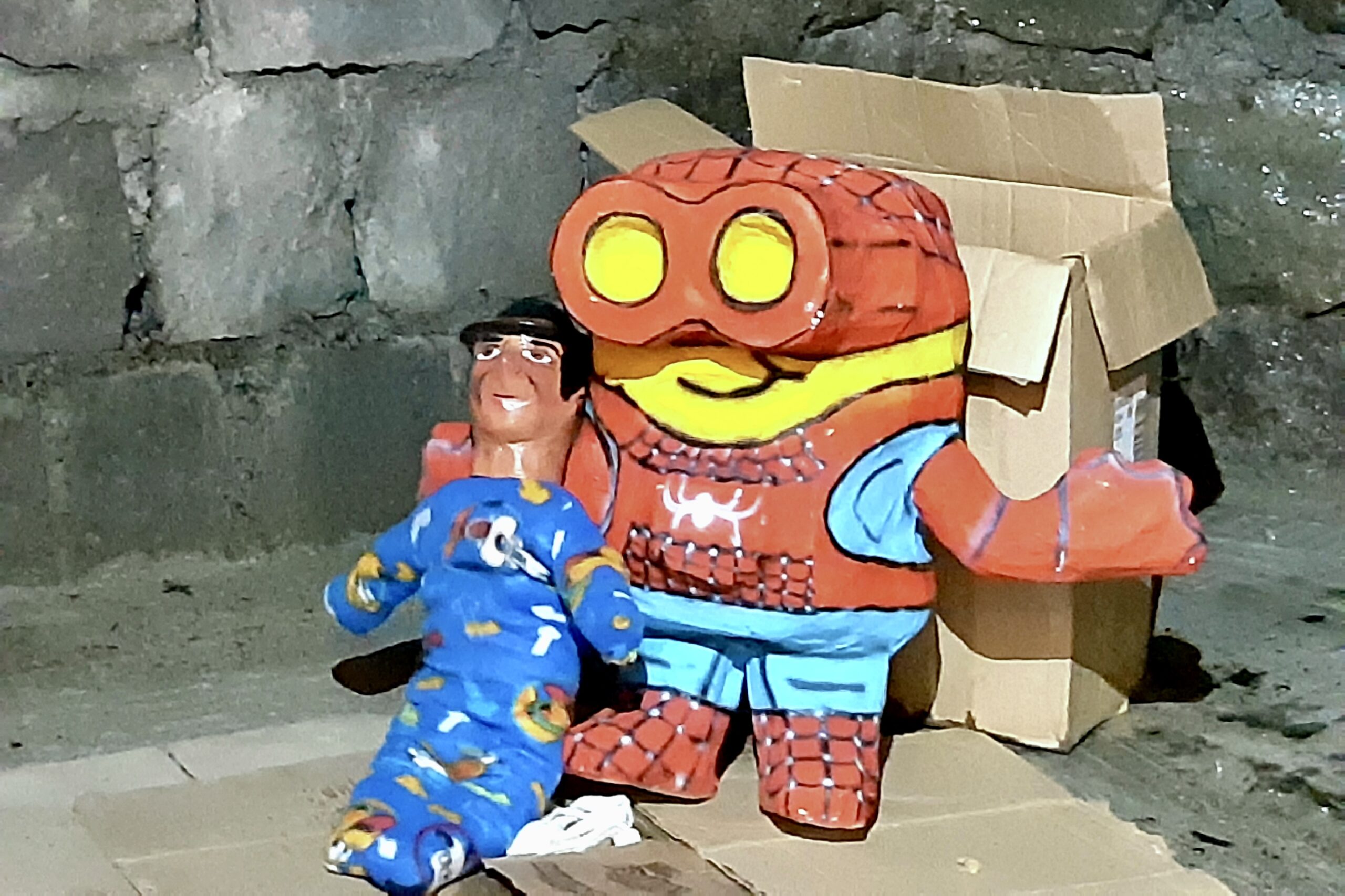 Auch am Silvesterabend bediene ich zwar, feire aber genauso mit. Nach dem Abendessen (in Ecuador traditionell Truthahn) gehen wir raus um zwei Puppen zu verbrennen, einen Politiker und ein Spider-Minion. Es ist wohl eine sehr merkwürdige Tradition, aber sie ist hier sehr wichtig. Bereits Tage vorher sind überall auf den Straßen Papppuppen verkauft worden. Wir schreiben auf kleinen Zetteln alles Schlechte, was wir loswerden wollen, genauso wie unsere Wünsche für das neue Jahr auf und werfen die Zettel mit ins Feuer. Danach springt man einmal über das Feuer und tanzt ein bisschen.