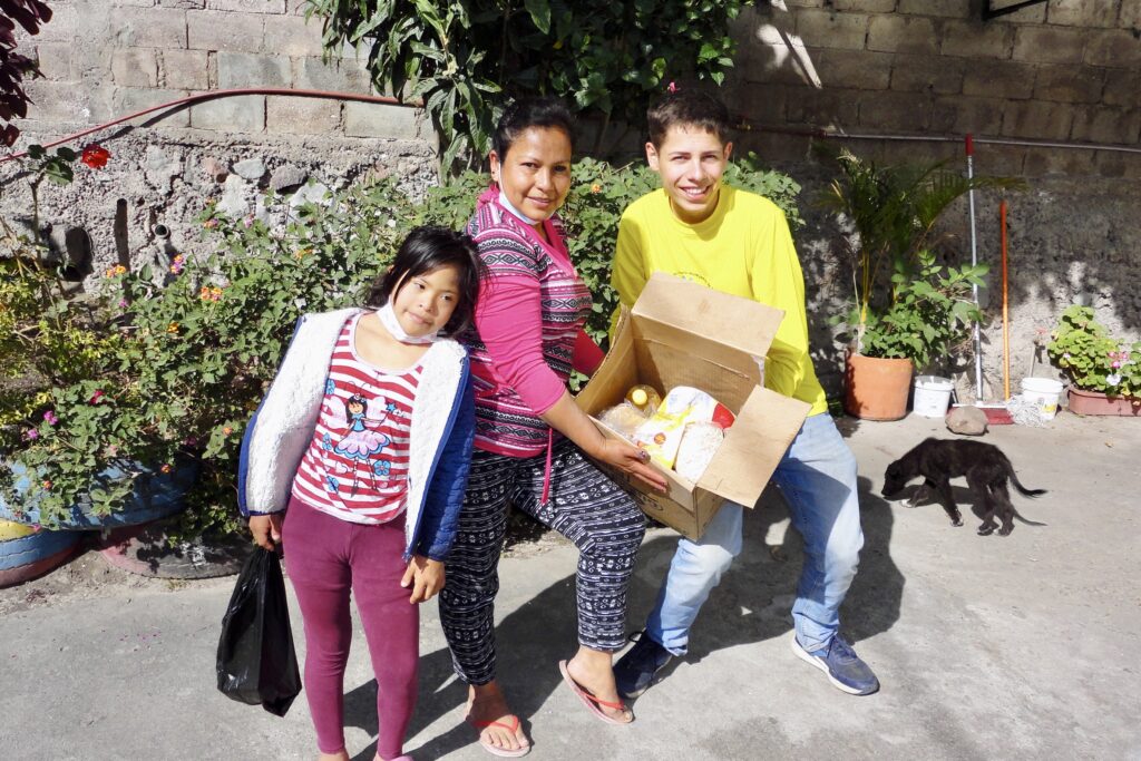 Hier im Norden von Quito, in den Gemeinden Calacalí, San Antonio und Pomasqui leben die Familien. Meistens nur Donnerstag steht ein Wagen zur Verfügung, mit dem wir diese besuchen konnten. Die Familien wohnen manchmal sehr weit auseinander und wir müssen von einem Berg zum nächsten fahren. Die Wege zu den Häusern hin sind teilweise ziemlich schlecht, die Familien auch per Handy, wenn sie denn funktionieren, oft nicht gut erreichbar und manchmal ist niemand Zuhause. Es ist immer wieder eine Herausforderung, die Essenspakete zu den Familien zu bringen, wenn wir sie dann aber erreichen und die Pakete überbringen können, sind die Menschen und wir überglücklich.