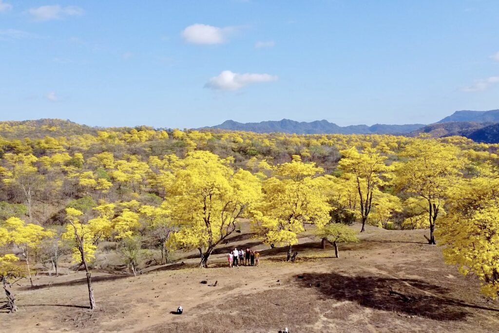 Doch warum ausgerechnet da? An diesem Ort gibt es einen großen sehr trockenen Wald. Fast das ganze Jahr über sind die Bäume kahl, besitzen keine Blätter und wirken wie ausgetrocknet und tot. Doch einmal im Jahr für nur etwa sieben Tage erstrahlt der ganze Wald in Gelb. Es sind die Blüten der Guayacanes, die den Wald gelb färben.