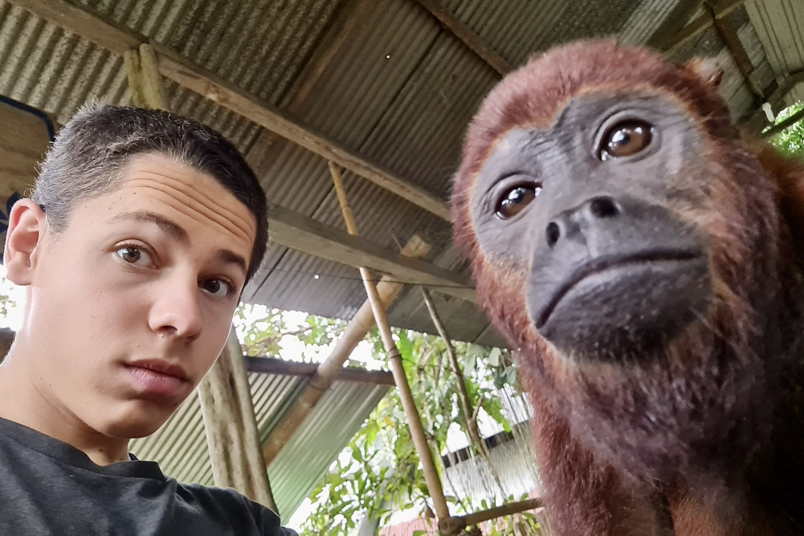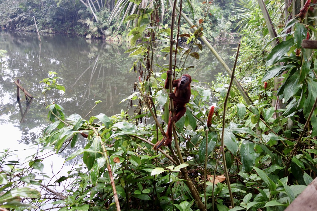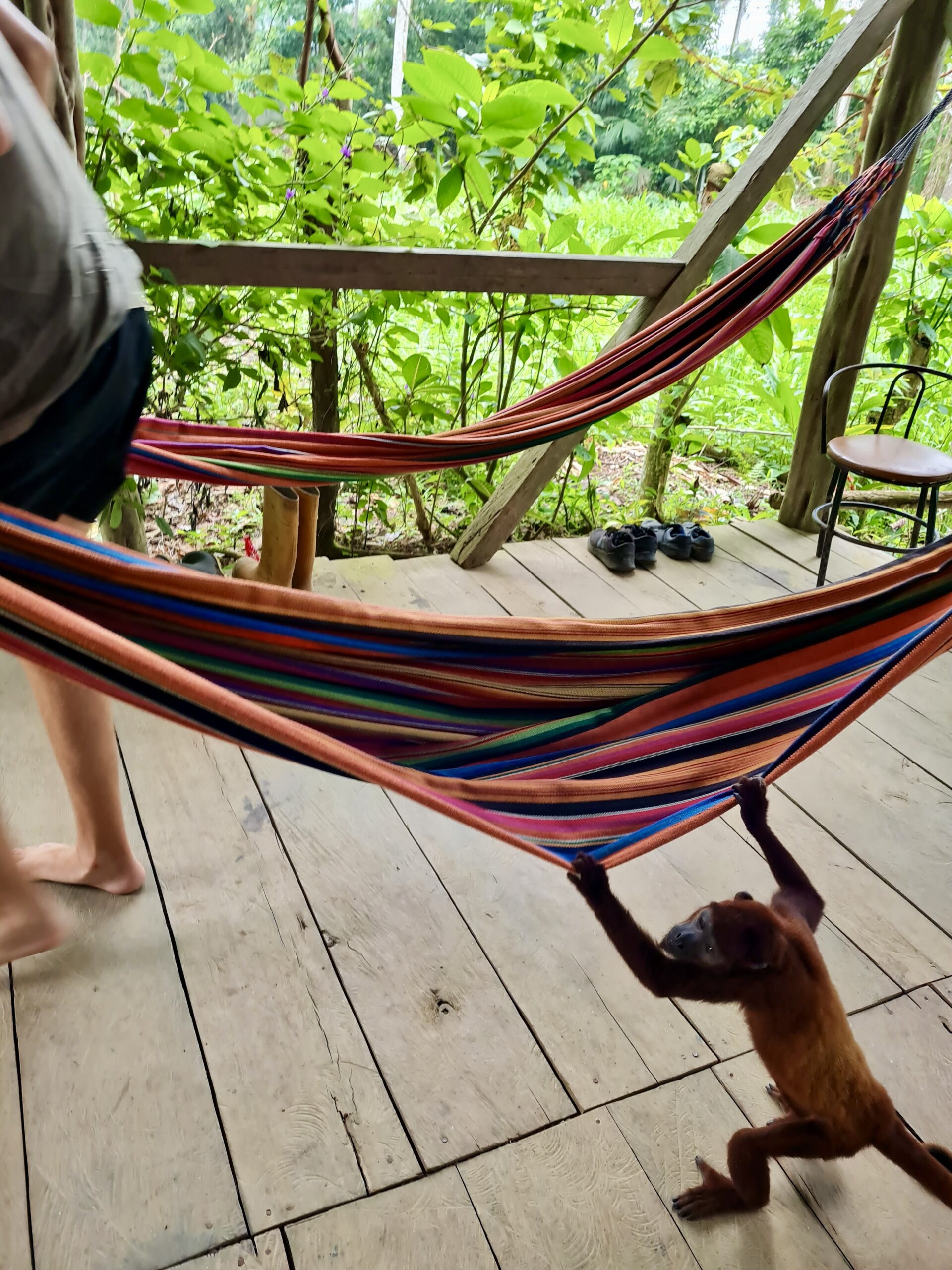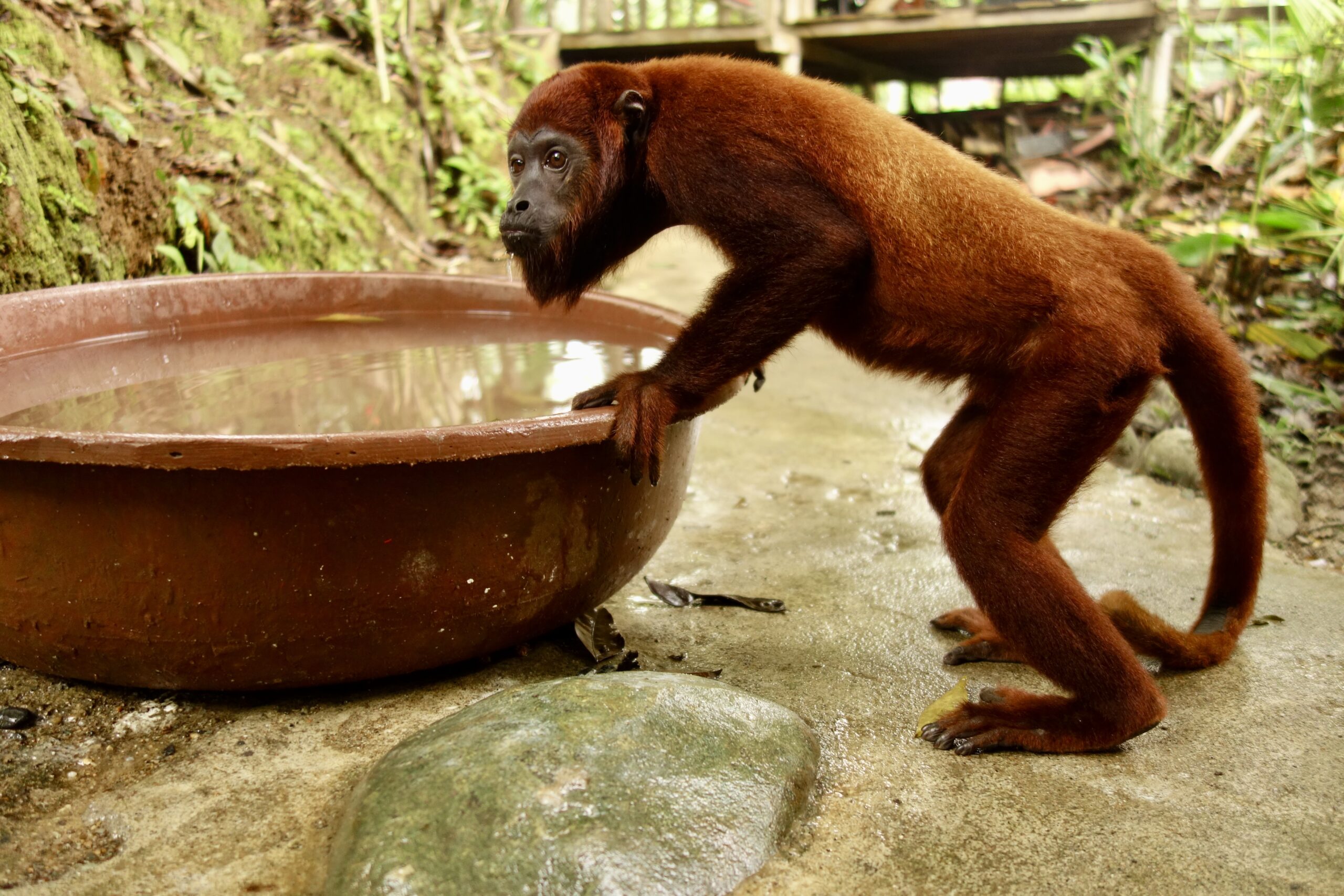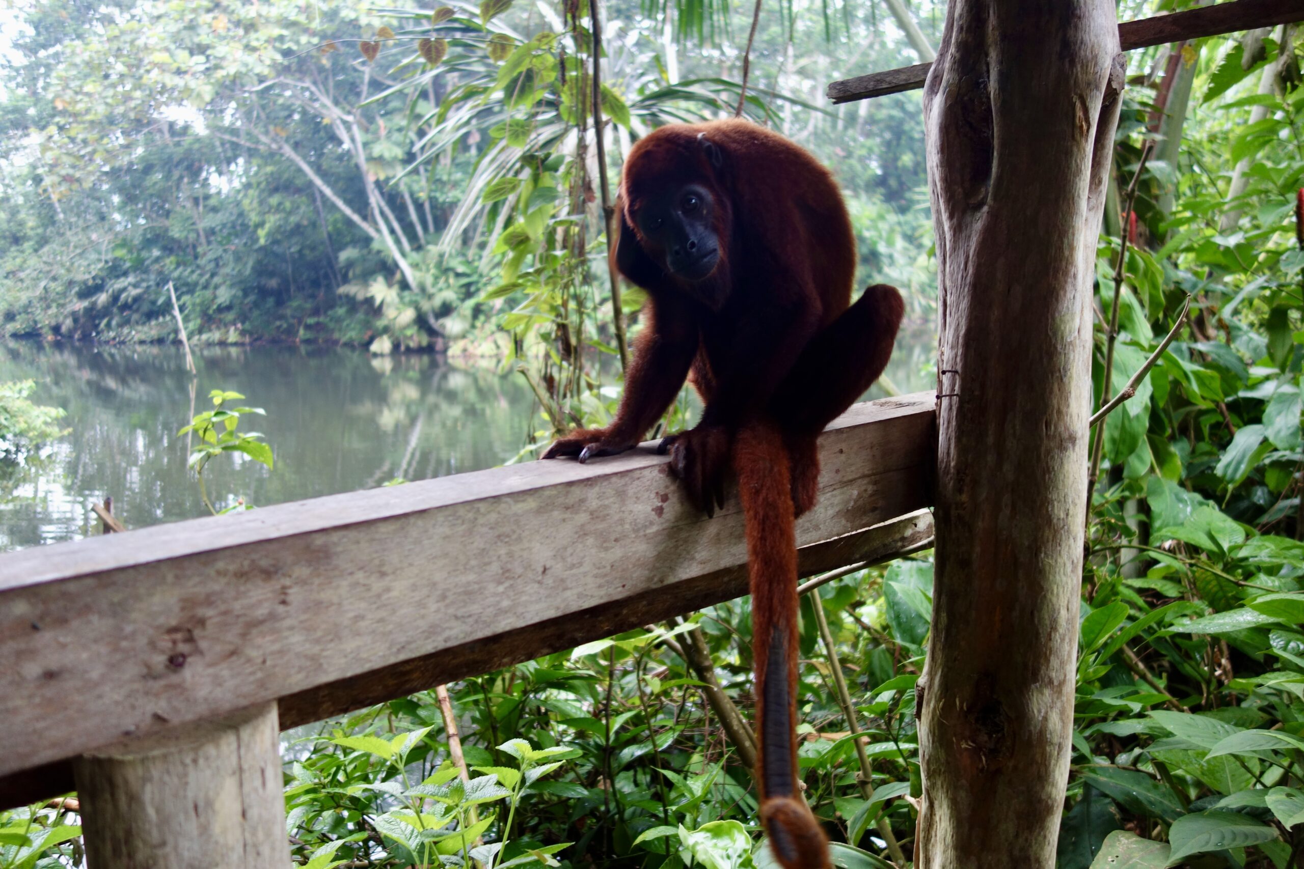 In der Unterkunft lebt auch ein junges rotes Brüllöffchen, dass wohl von seiner Familie ausgestoßen wurde. Mehrmals haben die Besitzer der Unterkunft das Äffchen versucht wieder in den Wald auszusetzen, aber es ist immer wieder zurückgekommen.
