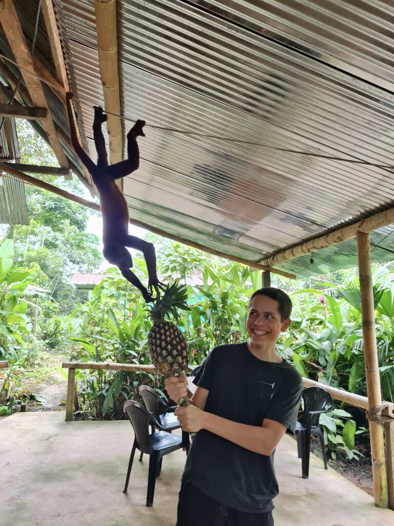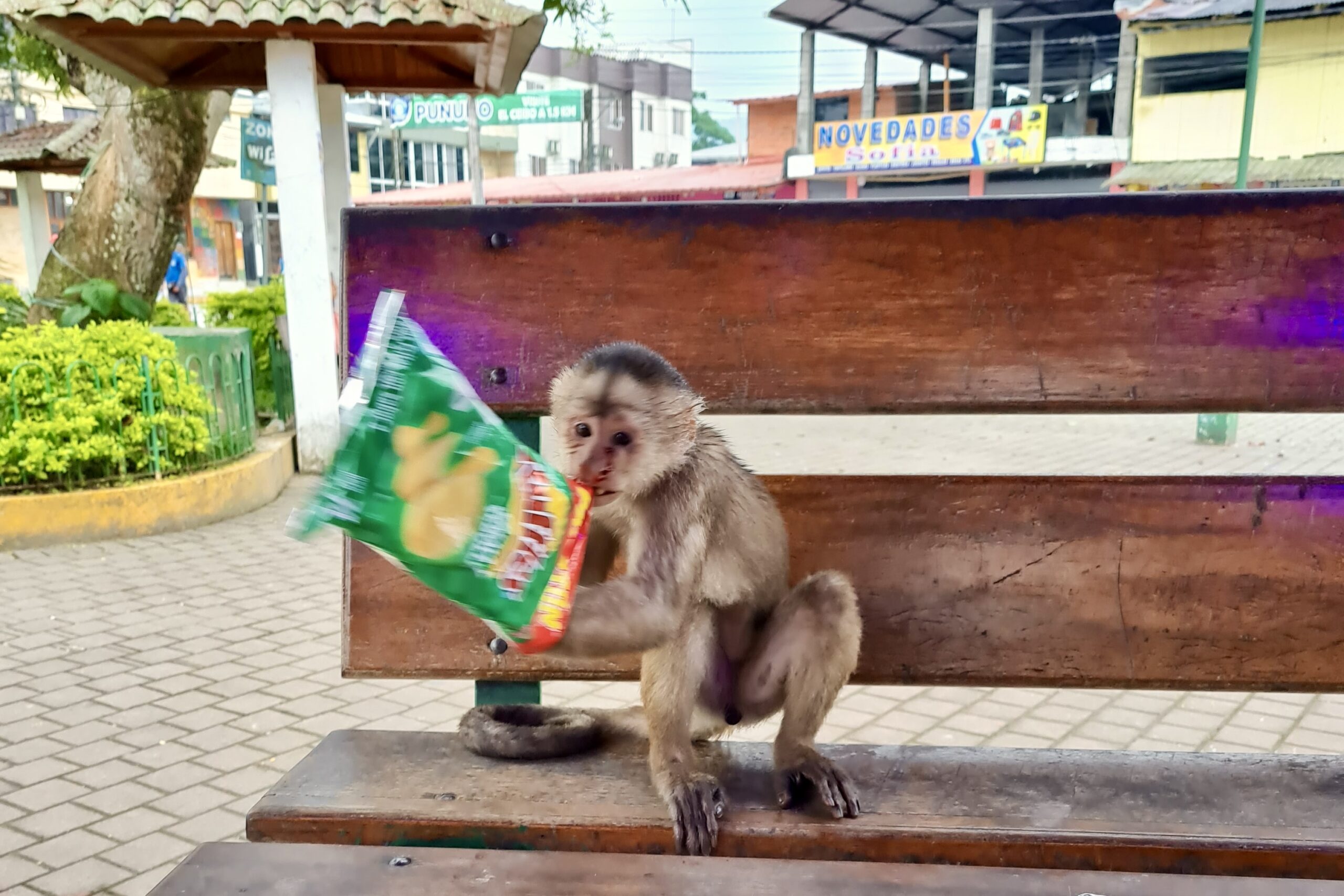 Warum verschlägt es mich nach Misahuallí? Natur und Affen!!! Der Ort ist bekannt für seine Kapuzineräffchen, die überall im Ort herumlaufen und alles stehlen, was glänzt oder essbar erscheint. Auch mir ist es einmal passiert und meine Mütze war schnell weg.