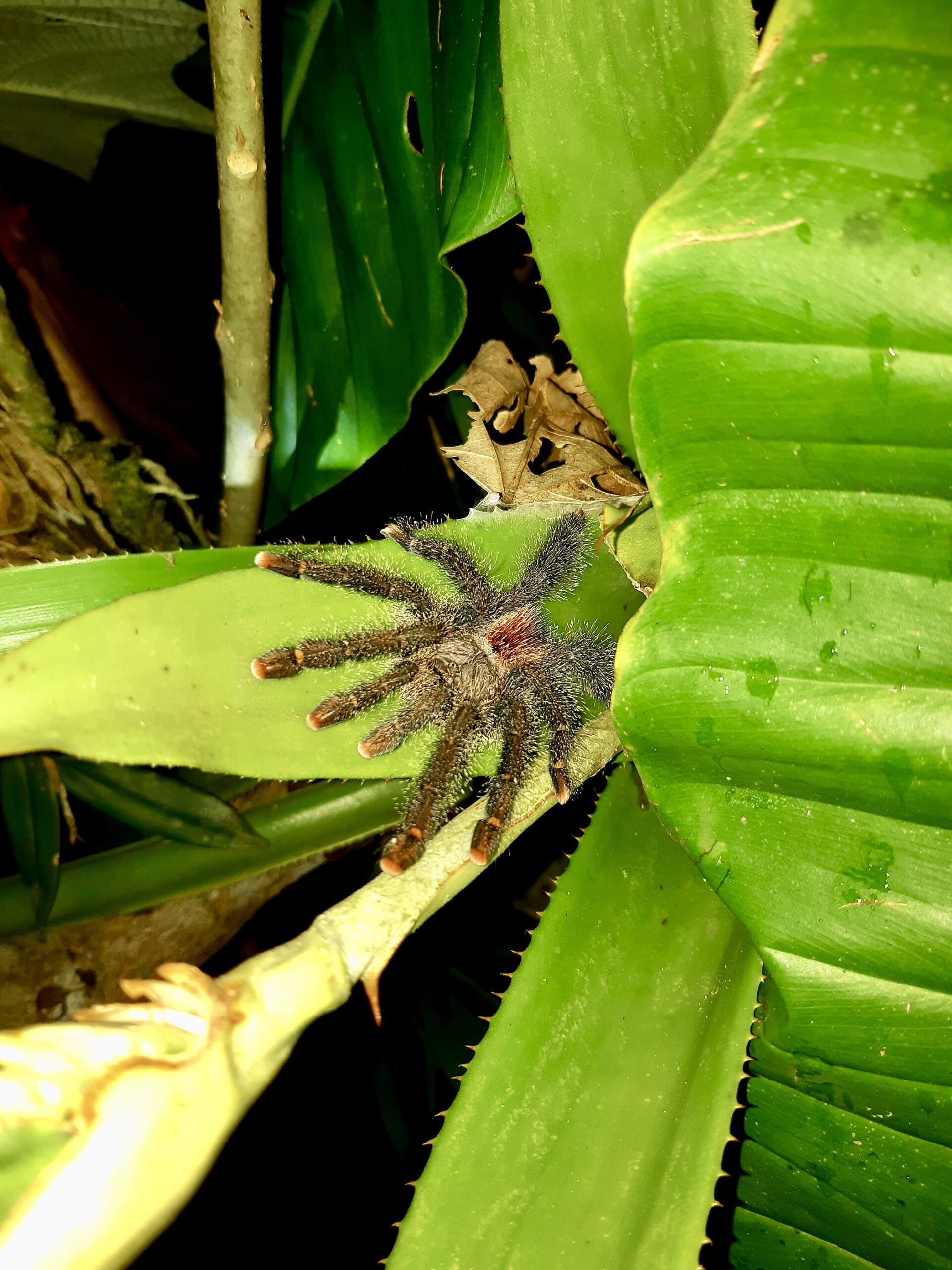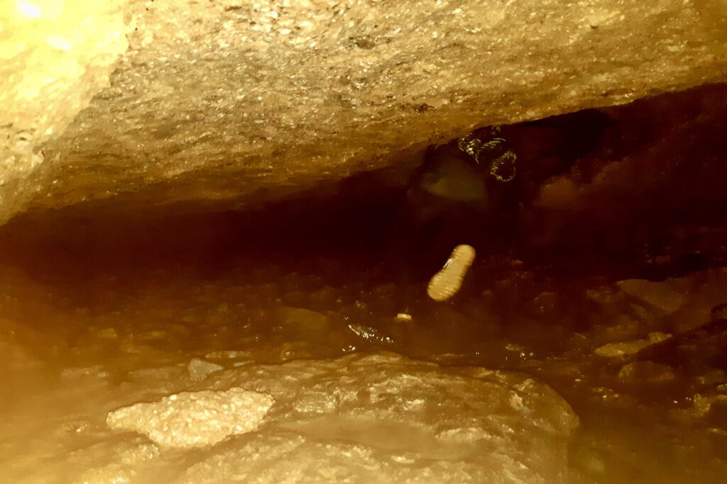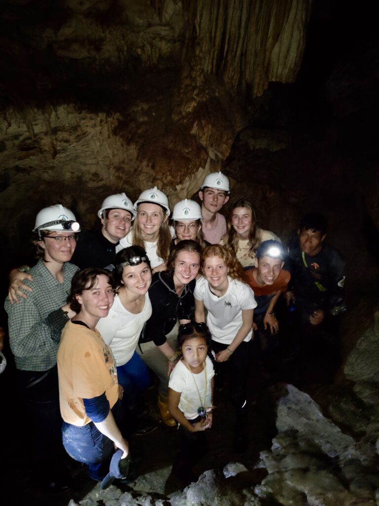 Neben der Wanderung zum Wasserfall, machen wir auch einen Ausflug in eine Höhle. Zwei Stunden lang krabbeln wir durch die sehr enge Höhle immer einen Bach entlang. Oft muss man sich sogar ganz in den Bach hinlegen um voranzukommen. Die Gummistiefel haben jedenfalls nicht so viel gebracht. Leider konnte man auch nicht so einen großen Abstand von den großen Skorpionsspinnen nehmen, die überall an den Felswänden krabbelten. Die Höhle hat mich wirklich sehr beeindruckt.