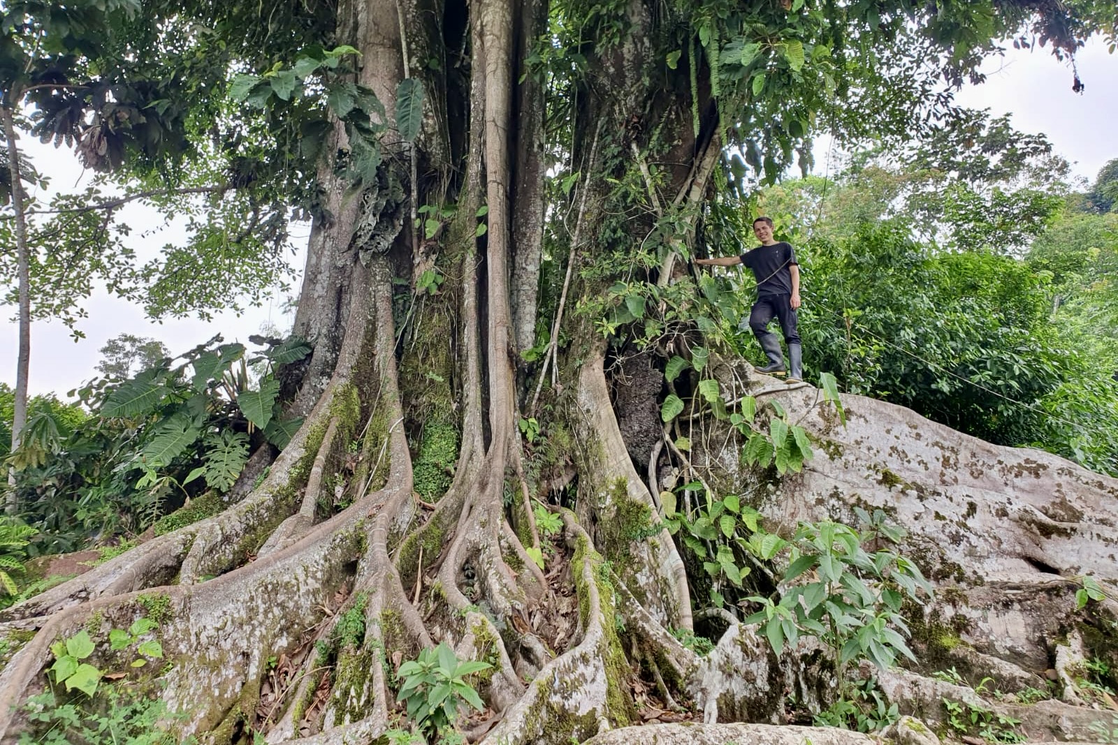 Dieser Baum ist am Anfang an einem anderen Baum von oben nach unten heruntergewachsen und hat den alten Baum langsam erwürgt, eine Art Würgefeige. Heute ist nichts mehr vom alten Baum zu sehen und dieser Baum so groß!