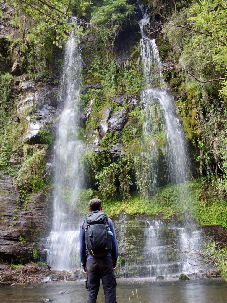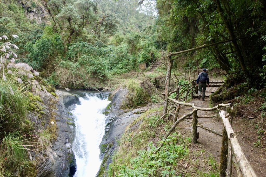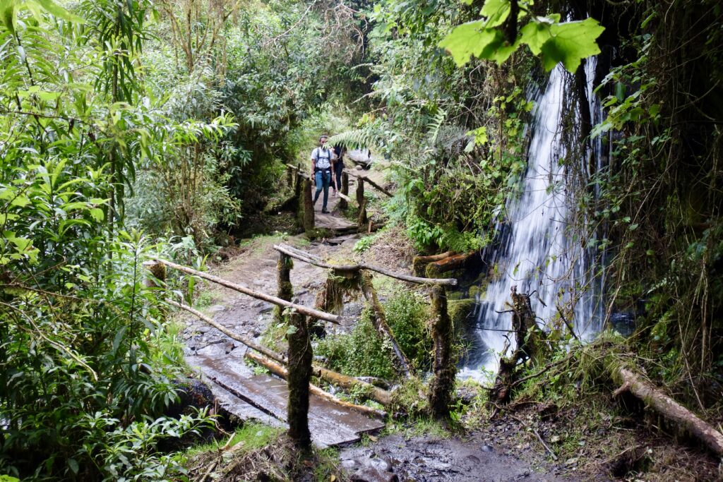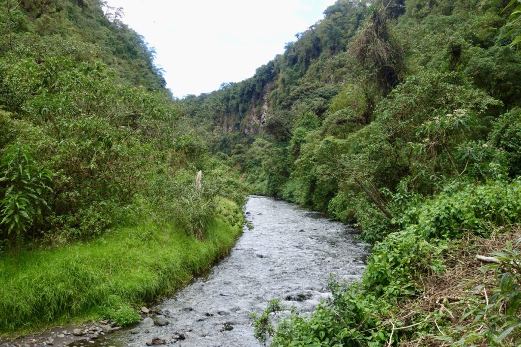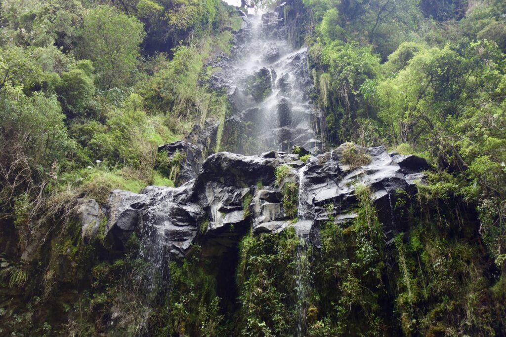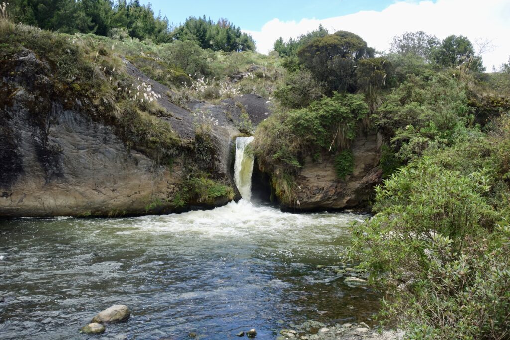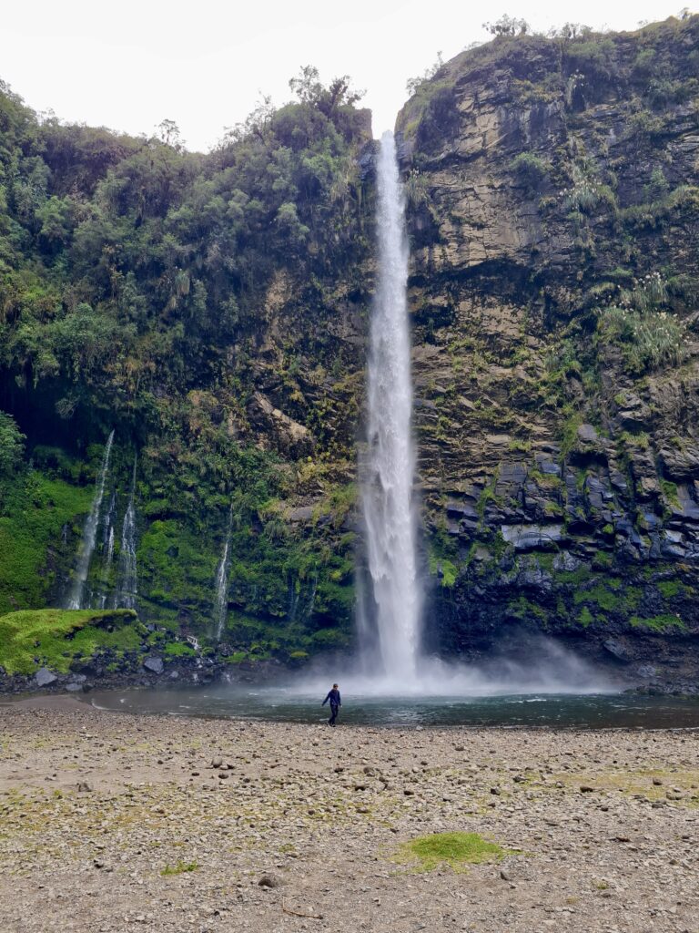 An einem anderen Tag (genauer gesagt in der letzten Woche vor meiner Abreise, ich habe diesen Abschnitt später hinzugefügt) machen wir eine Wanderung zum Condor Machay, den größten Wasserfall in der Umgebung von Quito. Da wir jedoch von der falschen Seite aus loslaufen, müssen wir einmal den Pasochoa (Vulkan) umrunden, und die Wanderung wird sehr viel länger als geplant, bei der wir ohne zwischenzeitliches Trampen niemals am Wasserfall angekommen wären.