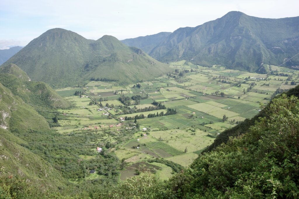 In diesem Krater leben Menschen und betreiben Landwirtschaft. Es sieht so idyllisch aus, jedoch ist der Pululahua-Krater aktiv! Ja tatsächlich, unterhalb der Felder befindet sich eine Magmakammer und ich habe zumindest Videos gesehen, wo Gasblasen aus dem Wasser hochsteigen. Der Krater hat vor etwa 2300 Jahren das letzte mal eine Eruption erfahren. Durchschnittlich alle 4000 bis 4500 Jahre etwa explodiert der Krater, also haben die Leute im Krater noch ein bisschen Zeit. Auch interessant: Das Ökosystem ist, obwohl wir von mir zu Hause aus nur 10 Minuten mit dem Bus fahren, ganz anders und viel grüner.