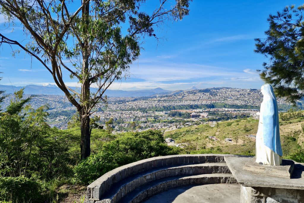 Oben ist zwar kein Gipfelkreuz, sondern nur ein alter Turm, bei gutem Wetter hat man jedoch eine wundervolle Aussicht auf so manche Vulkane Ecuadors, Quito, und die Äquatorlinie.