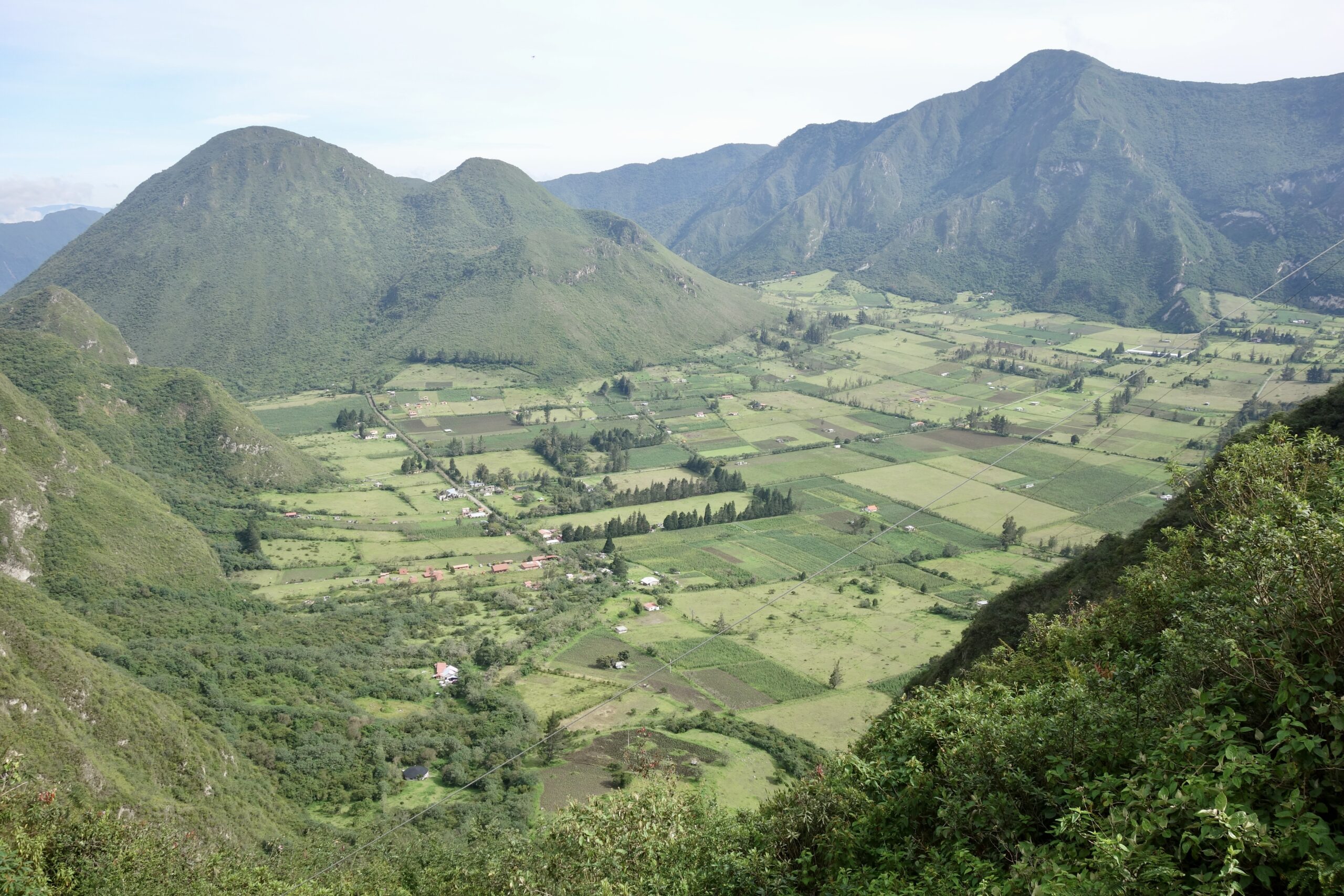 Bei mir in der Nähe gibt es aber auch noch einen anderen Ort, wo man gut wandern kann: der Pululahua-Krater. Nach etwa 15 Minuten mit dem Bus und weiteren 15 Minuten zu Fuß kommt man am Eingang des riesigen Vulkankraters an.