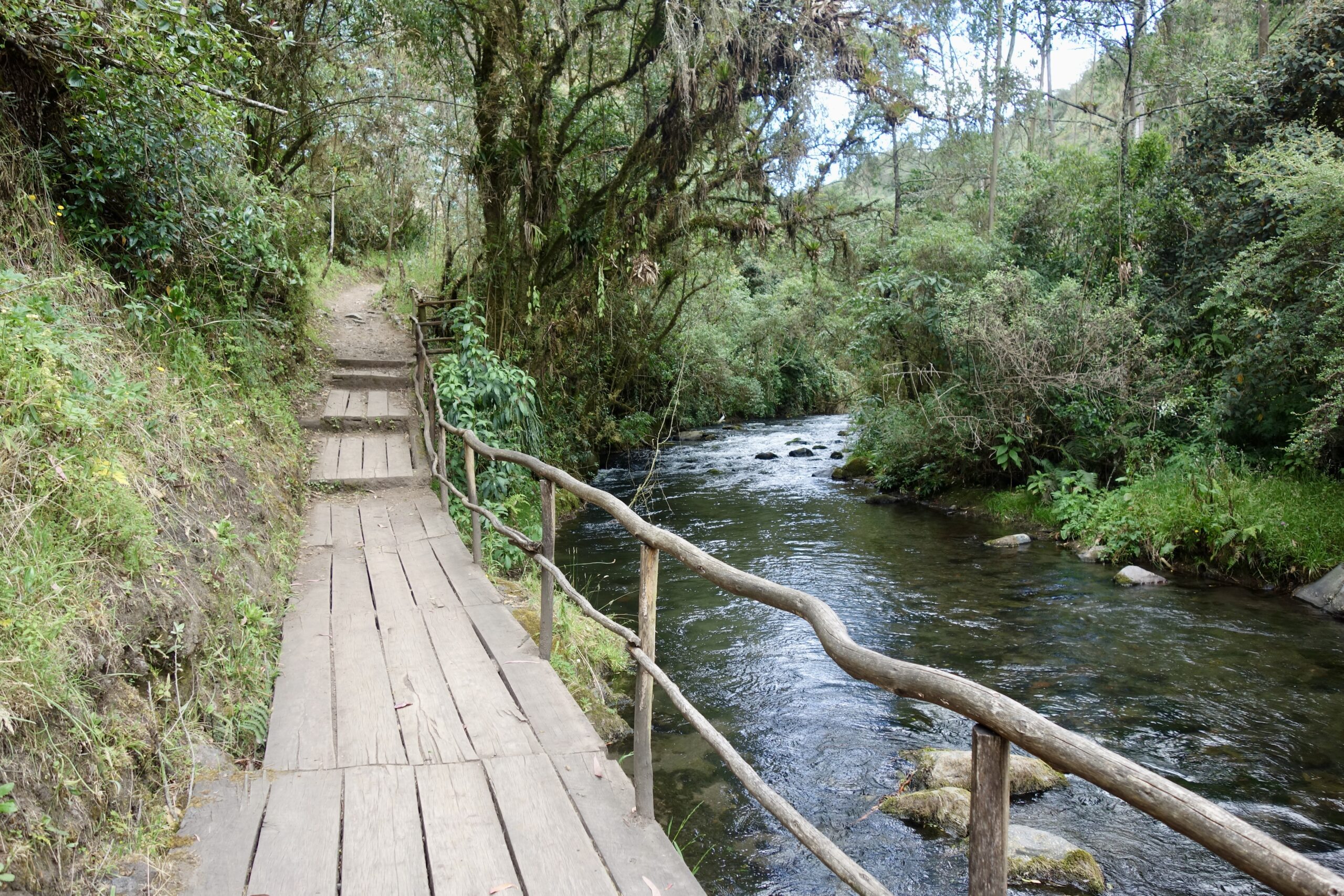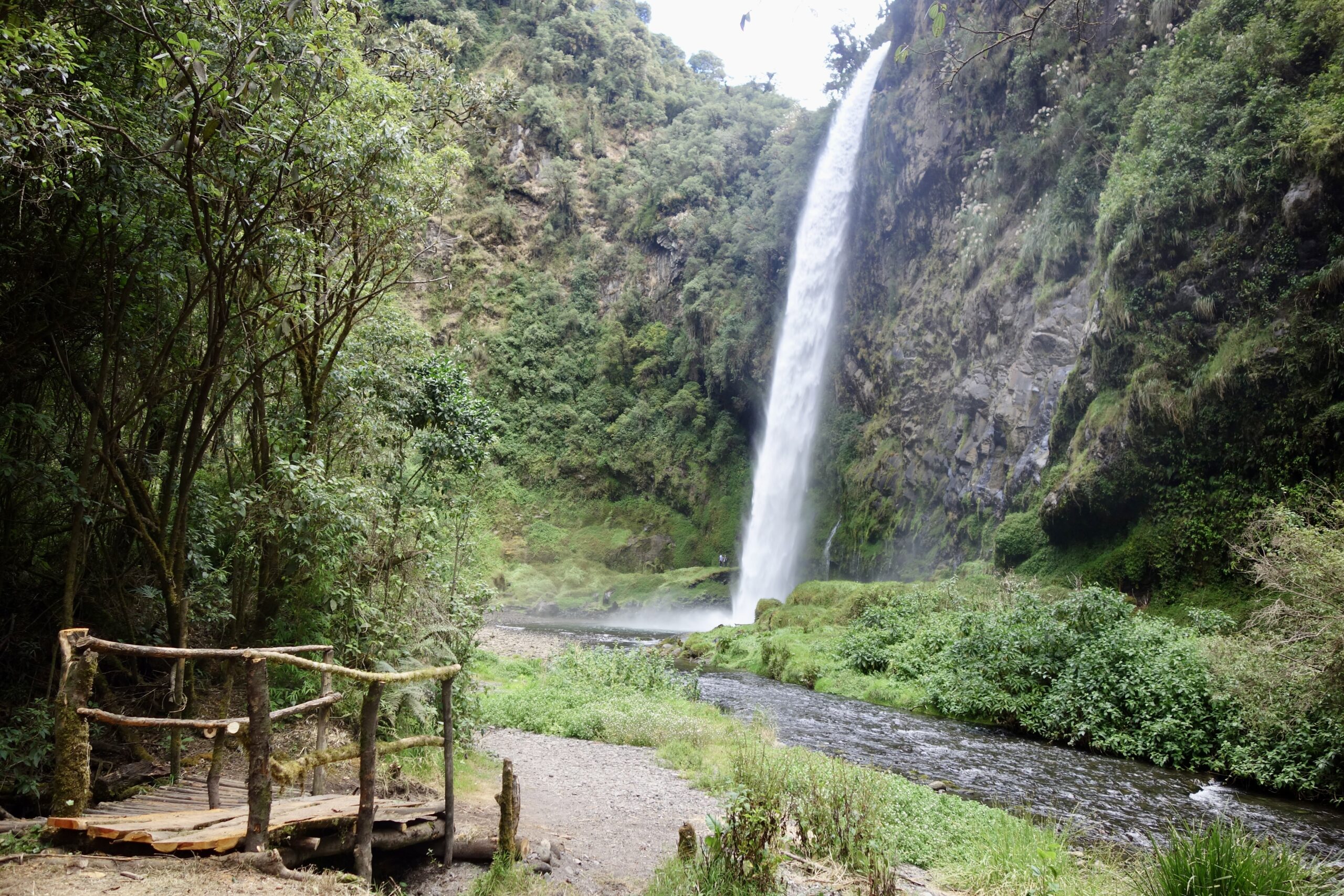 An einem anderen Tag (genauer gesagt in der letzten Woche vor meiner Abreise, ich habe diesen Abschnitt später hinzugefügt) machen wir eine Wanderung zum Condor Machay, den größten Wasserfall in der Umgebung von Quito. Da wir jedoch von der falschen Seite aus loslaufen, müssen wir einmal den Pasochoa (Vulkan) umrunden, und die Wanderung wird sehr viel länger als geplant, bei der wir ohne zwischenzeitliches Trampen niemals am Wasserfall angekommen wären.